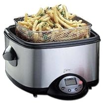 Deni Multi Fryer 9200 For those whose kitchen does not have room for several appliances, Deni introduces the Multi-Fryer. With this one appliance, you can slowcook, boil, sauté, bake and deep fry various foods. The 8 quart capacity, 3 quart oil capacity, cast aluminum non-stick inner pot provides even heat distribution. Basket can be raised and lowered with the lid on to prevent splattering and drain the food without heat loss. This versatile appliance is one that you can use everyday. You will love its many uses. The Deni Multi Fryer 9200 has Five functions: Slow Cook (176°F -208°F) Boil (221°F) Fry (265°F - 375°F) Bake/Deep Fry (265°F - 375°F) Electronic easy to use touch pad with LCD display controls time, function and cooking temperatures Digital timer sounds when cooking time is completed with a maximum setting time of approximately 10 hours Layered charcoal and oil filter absorbs odor, grease and smoke Brushed stainless steel housing for easy cleaning Brushed stainless steel lid with handle and tempered glass window to view food Removable diecast aluminum, double non-stick inner pot Galvanized deep fry basket attaches to inner pot to drain food while the lid remains on. Basket can be raised and lowered without removing the lid. Deep fry 2 lbs of food Wire steam rack Cool touch handles UL approved with magnetic detachable cord Unit includes wire basket with removable handle, wire rack, three layer charcoal and oil filter and an instruction book with recipes